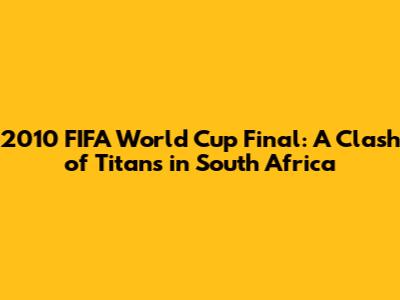 The stage was set, the teams were ready, and the world was watching. The 2010 FIFA World Cup Final was more than just a game; it was a clash of titans, a battle of strategies, and a showcase of the beautiful game at its finest. From the very first whistle, it was evident that this was going to be a match filled with tension, drama, and nail-biting moments. Both teams were aware of the stakes, with the coveted trophy and the title of world champions up for grabs. The match was a demonstration of skill, strategy, and sheer determination. Both sides played with an unwavering passion and a relentless desire to win. It was a game that will be remembered for years to come. The final brought together two exceptional teams, each with its unique playing style and a burning desire to etch their name in footballing history. It was a display of talent, tactical brilliance, and the undying spirit of the sport. Every moment of the game was a testament to the dedication, passion, and skill of the players involved. It was a true reflection of the sport's global appeal.