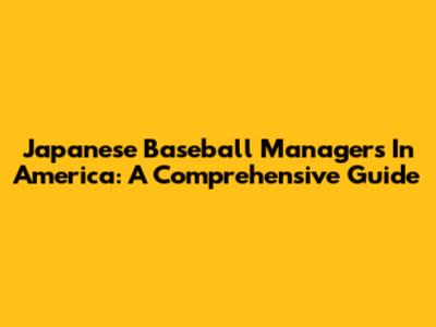 Japanese Baseball Managers In America: A Comprehensive Guide