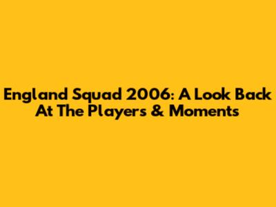 England Squad 2006: A Look Back At The Players & Moments