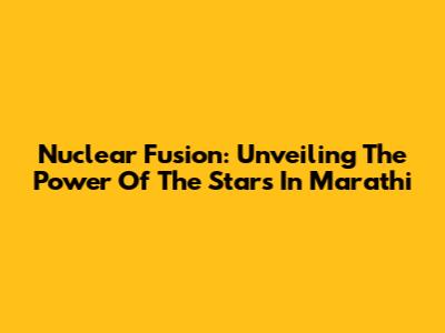 Nuclear Fusion: Unveiling The Power Of The Stars In Marathi