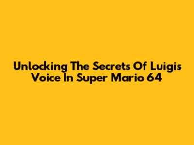 Unlocking The Secrets Of Luigi's Voice In Super Mario 64