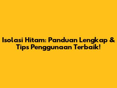 Isolasi Hitam: Panduan Lengkap & Tips Penggunaan Terbaik!