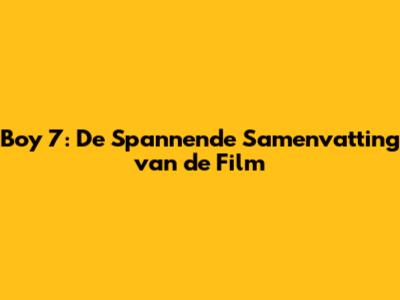 Boy 7: De Spannende Samenvatting Van De Film
