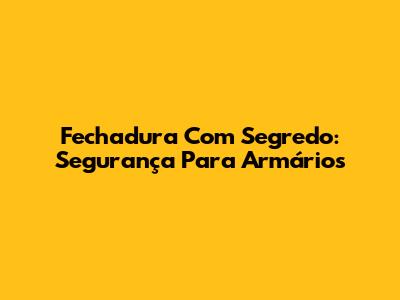 Fechadura Com Segredo: Segurança Para Armários