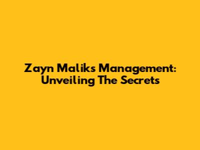 Zayn Malik's Management: Unveiling The Secrets
