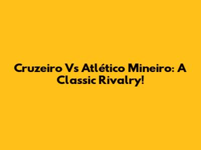 Cruzeiro Vs Atlético Mineiro: A Classic Rivalry!