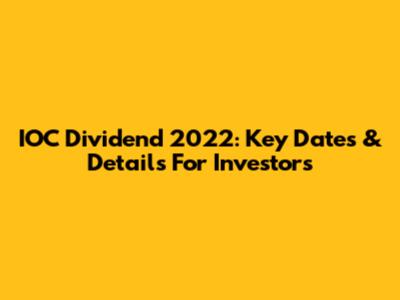 IOC Dividend 2022: Key Dates & Details For Investors