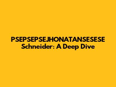 PSEPSEPSEJHONATANSESESE Schneider: A Deep Dive
