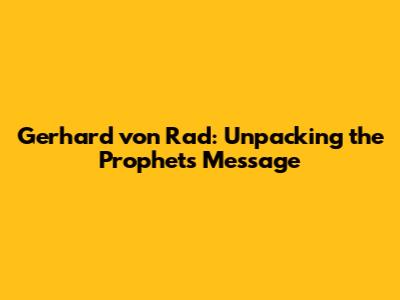 What's up, guys! Today, we're diving deep into some seriously fascinating theological territory with the work of Gerhard von Rad, specifically his groundbreaking book, The Message of the Prophets. If you're into biblical studies, Old Testament theology, or just curious about what the prophets were really all about, then stick around because this is going to be a wild ride. Von Rad, a prominent German theologian, pretty much revolutionized how many scholars understood the prophetic books. He didn't just look at them as collections of individual predictions; instead, he saw them as dynamic, unfolding messages meant for specific historical contexts, deeply rooted in Israel's covenant relationship with God. His approach is like peeling back layers of an onion, revealing the core concerns of the prophets: justice, faithfulness, and the ever-present reality of God's judgment and redemptive love. So, grab your Bibles (or just your favorite comfy chair), and let's get into it! We'll be exploring von Rad's key ideas, why they matter, and how they can still speak to us today. Get ready to have your mind blown, folks!