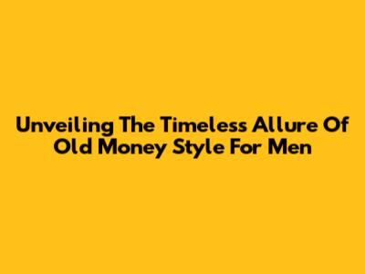 Unveiling The Timeless Allure Of 'Old Money' Style For Men