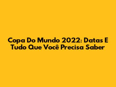 Copa Do Mundo 2022: Datas E Tudo Que Você Precisa Saber