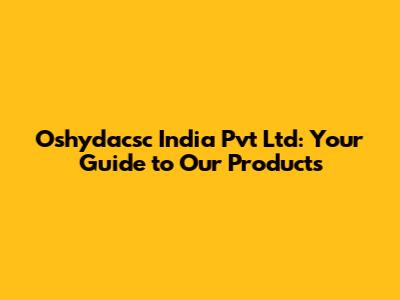 Understanding the Oshydacsc India Pvt Ltd Product Ecosystem