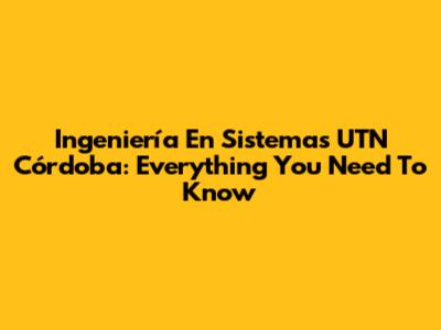 Ingeniería En Sistemas UTN Córdoba: Everything You Need To Know