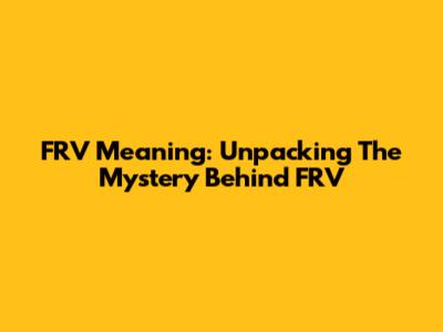 FRV Meaning: Unpacking The Mystery Behind FRV