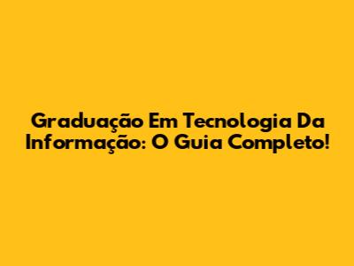 Graduação Em Tecnologia Da Informação: O Guia Completo!