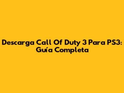 Descarga Call Of Duty 3 Para PS3: Guía Completa