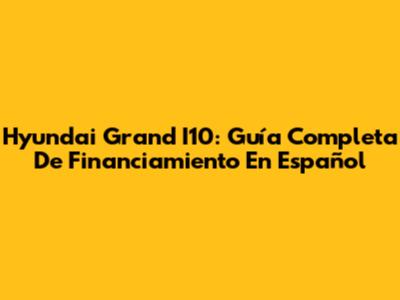 Hyundai Grand I10: Guía Completa De Financiamiento En Español