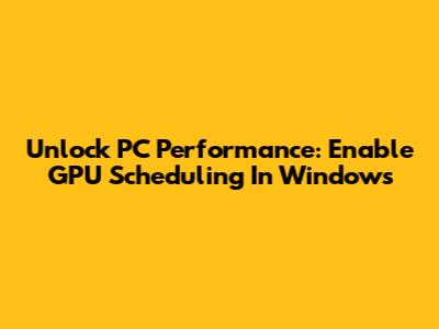Unlock PC Performance: Enable GPU Scheduling In Windows
