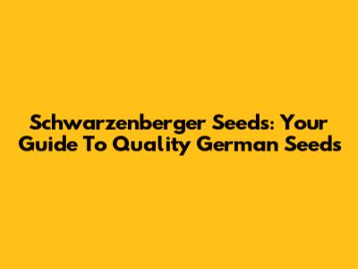 Schwarzenberger Seeds: Your Guide To Quality German Seeds