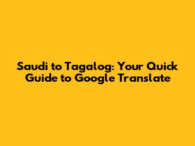 Hey guys! Need to translate something from Saudi to Tagalog pronto? You've come to the right place. Whether you're trying to understand a message from a friend, translate a document for work, or just curious about the language, Google Translate can be a lifesaver. In this article, we'll dive into how to use Google Translate effectively for Saudi (Arabic) to Tagalog translations, explore its features, and offer some tips to get the most accurate results. So, buckle up and let's get translating!