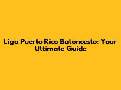 Liga Puerto Rico Baloncesto: Your Ultimate Guide