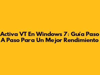 Activa VT En Windows 7: Guía Paso A Paso Para Un Mejor Rendimiento