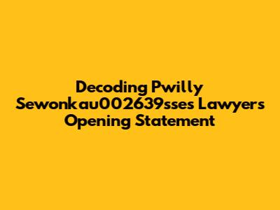 Hey everyone! Ever wonder what goes down in those high-stakes courtrooms? Well, today we're diving deep into the opening statement delivered by Pwilly Sewonkau002639sse's lawyer. This isn't just some random speech; it's a carefully crafted roadmap, a strategic blueprint designed to shape the narrative and influence the jury from the get-go. So, buckle up, because we're about to dissect the art of legal storytelling and uncover the key elements that make an opening statement truly impactful. We'll break down the nuances, explore the tactics, and analyze how a lawyer sets the stage for the entire case. Believe me, it's way more interesting than it sounds – think of it as the trailer for a blockbuster movie, but instead of explosions and car chases, you get legal jargon and compelling arguments! Let's get started, shall we?
